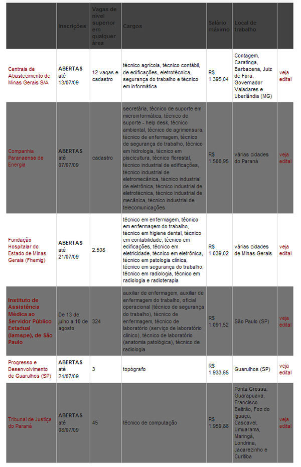 http://g1.globo.com/Noticias/Concursos_Empregos/0,,MUL148256-9654,00-CONFIRA+LISTA+DE+CONCURSOS+E+OPORTUNIDADES.html