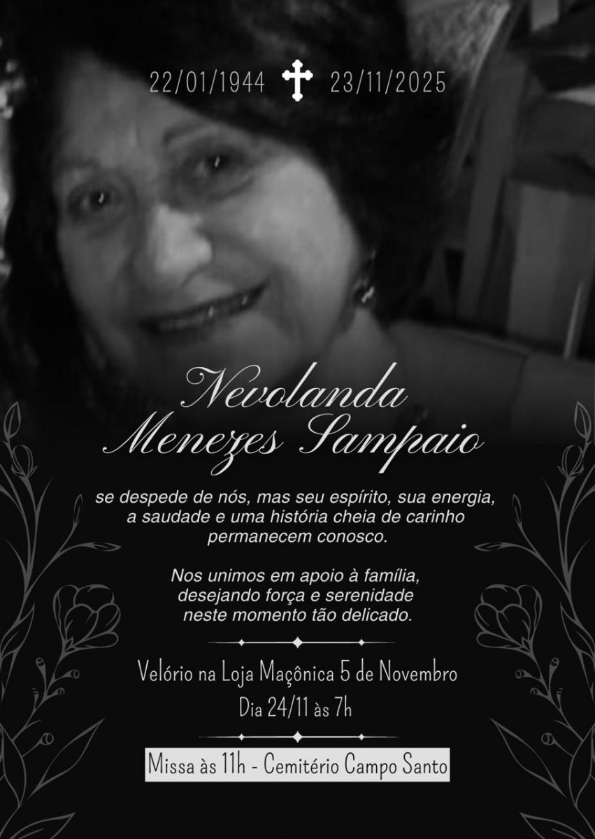Neste momento de dor e reconhecimento, a Câmara Municipal de Eunápolis se solidariza com amigos e familiares, ao tempo em que aplaude o trabalho da já saudosa Professora Nevolanda Menezes pelo seu zelo profissional, marcado pelo compromisso e pelo cuidado com a comunidade, pelo qual será sempre lembrada com respeito e gratidão.