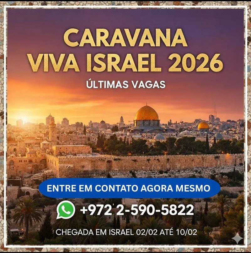 Mas atenção: a procura está altíssima e restam pouquíssimas vagas para o primeiro grupo oficial de 2026. Se você tem o sonho de conhecer Israel — ou de retornar para viver tudo mais uma vez — esta pode ser a melhor chance dos últimos anos.