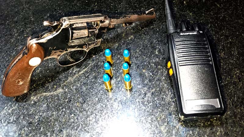 Durante a abordagem, um indivíduo foi surpreendido com um Revólver Taurus, calibre 32, com 6 cartuchos e 1 rádio comunicador.