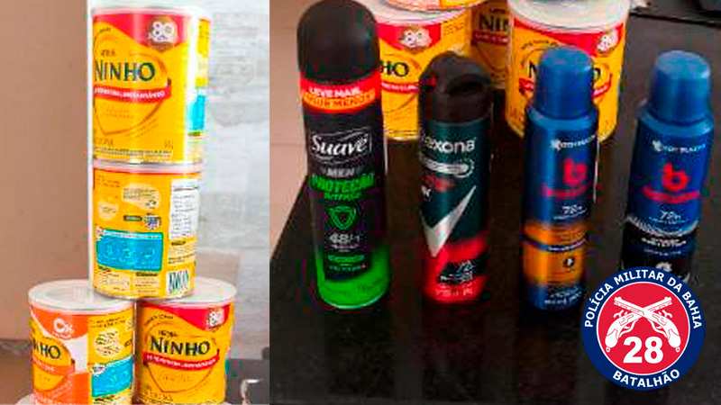 Durante rondas, um homem, com as características informadas foi localizado na mesma rua e detinha em sua posse uma sacola branca contendo latas de leite ninho e desodorante spray, objetos descritos pela testemunha.