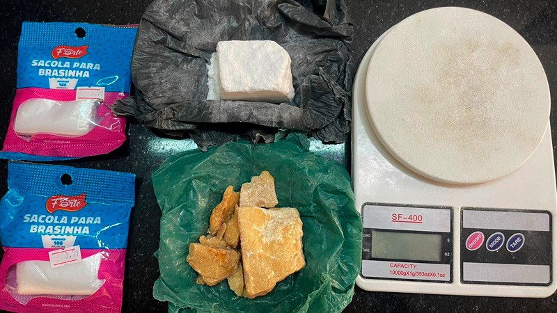 Ao notarem a presença da guarnição evadiram sentido boqueirão (área de mata), dispensando uma bolsa com 87 gr de crack,104 gr substância análoga a cocaína, 01 balança de precisão e embalagens para armazenamento de drogas.