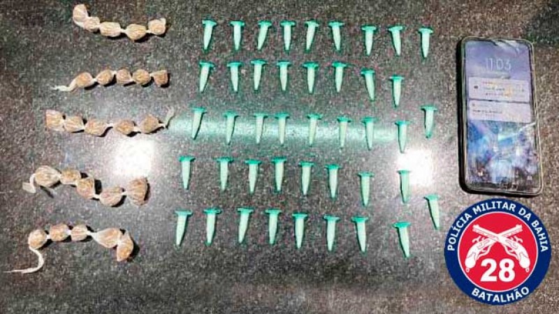 Chegando ao local, a guarnição avistou um indivíduo em atitude suspeita, que ao perceber a viatura, tentou evadir por um beco, sendo alcançado e abordado em frente a uma residência, onde foram localizados 25 buchas de maconha e 43 pinos de cocaína.