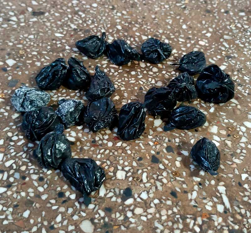 Após varredura no local, os policiais localizaram um porta-tabaco que havia sido jogado pelo indivíduo. Dentro do recipiente foram encontrados 19 papelotes de cocaína, totalizando aproximadamente 12 gramas da droga.