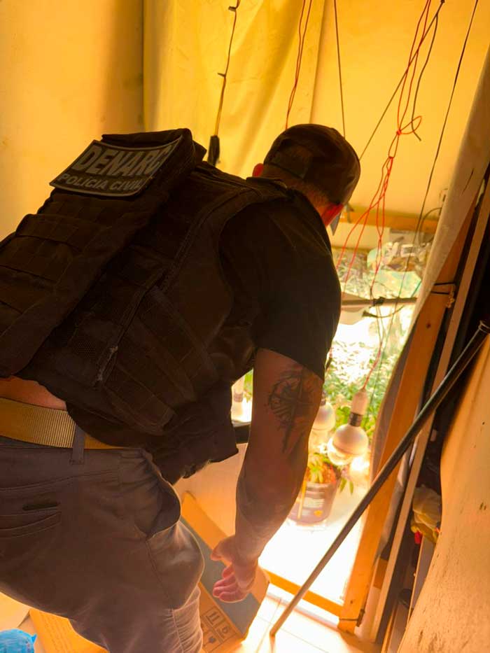 Após levantamento de informações de inteligência, foi identificado o endereço e realizada incursão pelas equipes policiais. No interior do imóvel, foram encontradas diversas plantas acondicionadas em vasos, bem como uma estrutura de estufa com sistema de refrigeração utilizado para o cultivo do entorpecente. Também foram apreendidos diversos petrechos relacionados ao plantio e à manutenção da substância ilícita.