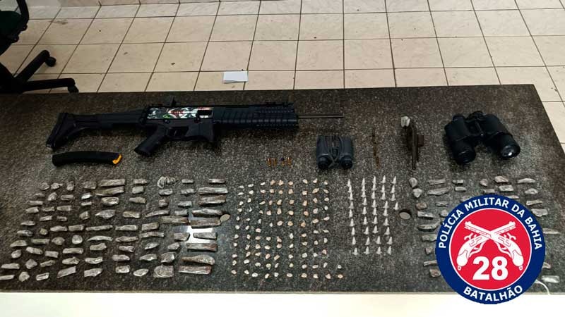 A Polícia Militar da Bahia realizou, na manhã desta terça-feira (10/03), a apreensão de duas armas de fogo e grande quantidade de drogas no município de Itabela.