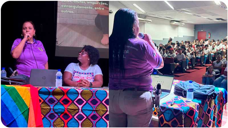 Durante a palestra, foram abordados os seguintes temas: "A DEAM na rede de proteçao: entendendo a lei para combater a violência contra as mulheres" , orientações acerca do que constitui violência doméstica e familiar; alerta sobre sinais de relacionamentos abusivos e a prática de crimes virtuais; bem como a importância da aproximação dos jovens aos canais oficiais de proteção e denúncia.