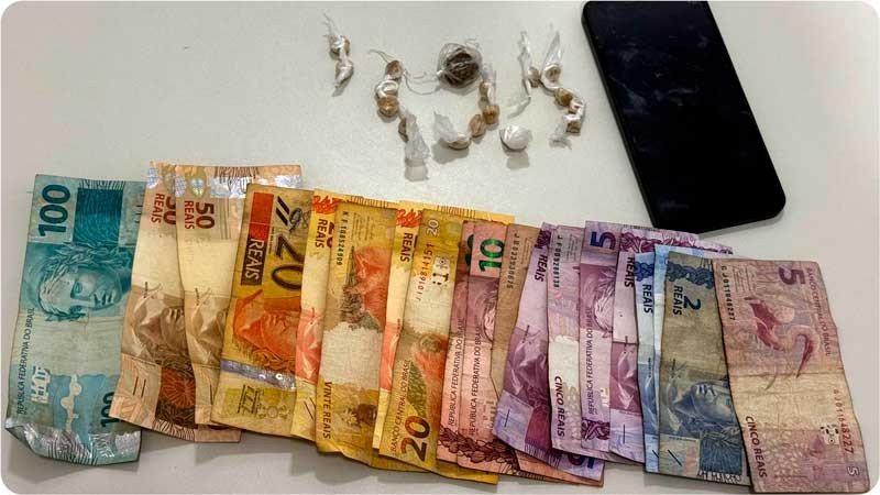 Durante a abordagem, foram identificados dois homens de 19 anos e um de 33 anos. Em busca pessoal e varredura no local onde o objeto foi descartado, os policiais encontraram entorpecentes, incluindo 15 pedras de crack, um papelote de maconha e um pino de cocaína, além da quantia de R$ 361,00 em espécie.