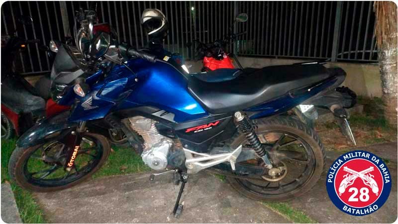 A Polícia Militar da Bahia, por meio do 28º BPM/Eunápolis, informa que, por volta das 21h30 do dia 19 de abril de 2026, durante rondas na Avenida Duque de Caxias, no centro de Eunápolis, uma guarnição suspeitou da atitude do condutor de uma motocicleta que realizava manobras perigosas, tentando empinar a roda dianteira e transitando pela calçada. Diante da situação, foi realizada a abordagem, sendo constatado, após consulta no sistema, que o veículo possuía restrição por furto/roubo. Verificou-se ainda que os ocupantes eram menores de idade. Os envolvidos foram conduzidos à Delegacia Territorial para adoção das medidas cabíveis, e o veículo foi removido para o pátio do órgão competente.