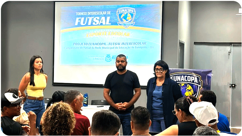 Eunápolis 01/04 - A Prefeitura de Eunápolis, por meio da Secretaria Municipal de Educação em parceria com a Secretaria de Esportes, anunciou oficialmente a realização da Eunacopa, um torneio interescolar de futsal que promete reunir estudantes de diversas unidades da rede municipal em uma grande celebração esportiva.