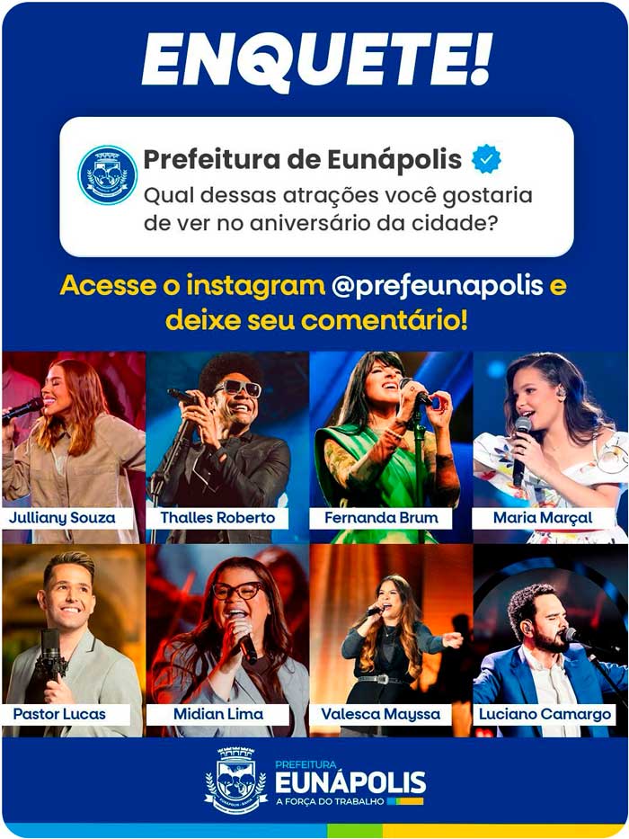 Como parte desse processo participativo, a Prefeitura de Eunápolis também mantém aberta a enquete popular, permitindo que os moradores contribuam diretamente na escolha das atrações. A votação acontece de forma prática e acessível por meio das redes sociais oficiais da Prefeitura, garantindo que a festa seja, de fato, construída com a voz do povo.