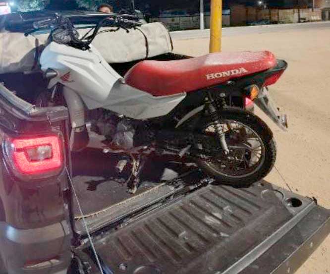 Durante incursão no local, a motocicleta com as características informadas foi localizada, sendo apresentada a Delegacia para tramitação legal.