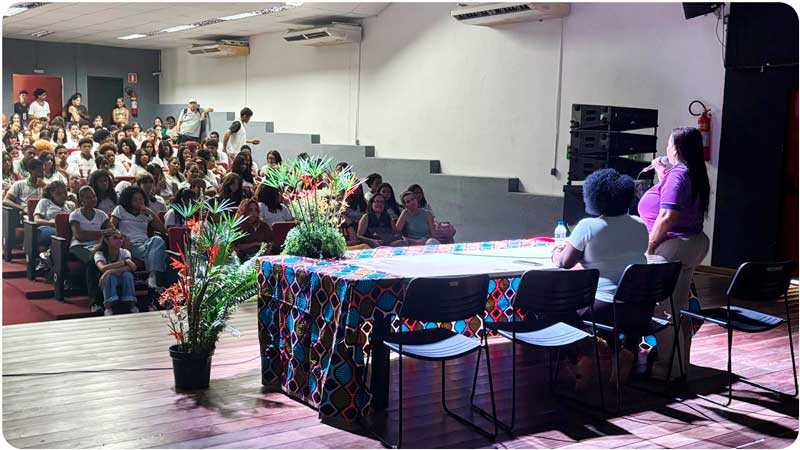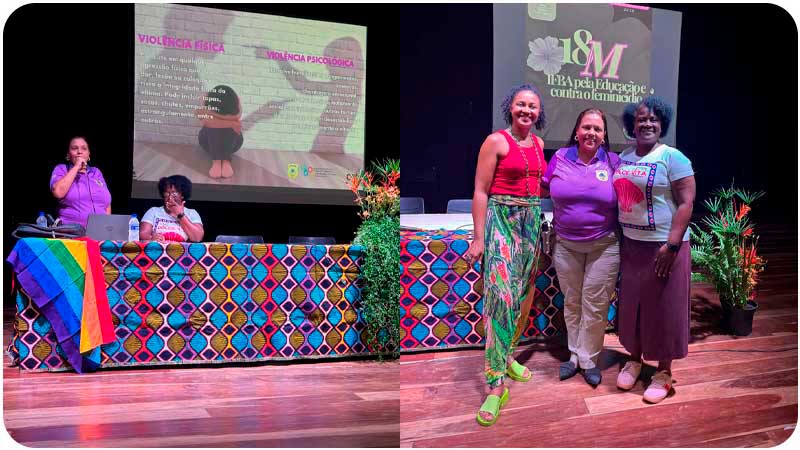 A Polícia Civil do Estado da Bahia, neste ato representada pela Delegada Titular da Delegacia Especial de Atendimento à Mulher (DEAM) de Porto Seguro, ministrou palestra na manhã do dia 18 de março de 2026 no Auditório do IFBA – Campus Porto Seguro, em atividade promovida pelo Núcleo de Estudos sobre Mulheres (NEM), no âmbito do evento “18M: IFBA pela Educação e contra o Feminicídio”.