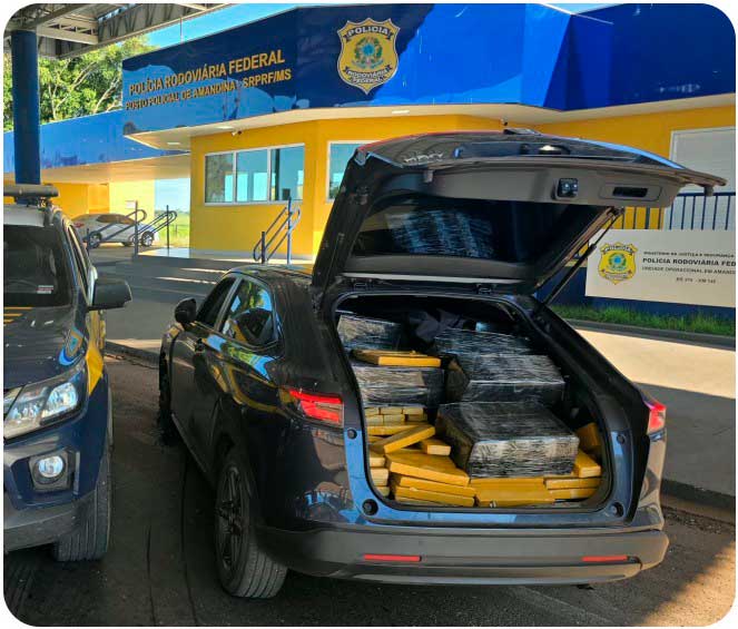 Polícia Rodoviária Federal (PRF) apreendeu 1.273 quilos de maconha e recuperou um veículo, nesta sexta-feira (06/04), em Ivinhema (MS).
