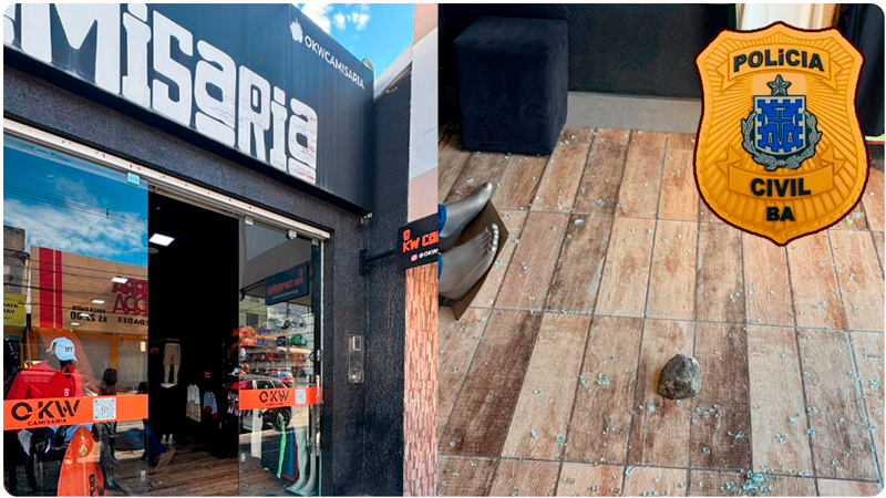 A Polícia Civil da Bahia, por intermédio da Delegacia de Repressão a Furtos e Roubos de Eunápolis, iniciou investigação após o comparecimento da vítima, proprietário de um estabelecimento comercial do ramo de vestuário localizado no Centro de Eunápolis/BA. Segundo o relato inicial, a unidade comercial foi alvo de ação criminosa na madrugada do dia 11 de abril de 2026, por volta de 01h40min, quando dois indivíduos subtraíram mercadorias mediante rompimento de obstáculo - o vidro da loja foi quebrado com uma pedra.
