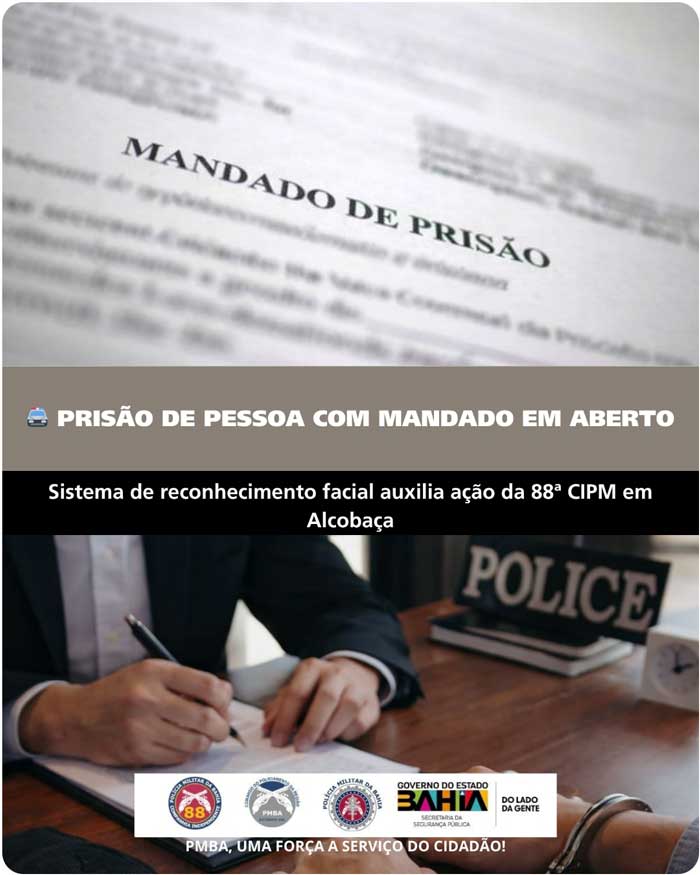 A Polícia Militar da Bahia, por meio da 88ª CIPM, realizou na manhã desta quinta-feira (16/04), por volta das 09h30, o cumprimento de mandado de prisão civil no município de Alcobaça.