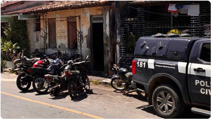 Uma ação da Polícia Civil resultou na prisão de dois homens pelos crimes de adulteração de sinal identificador de veículo automotor e posse irregular de arma de fogo de uso permitido, além da apreensão de 11 motocicletas, em uma oficina mecânica clandestina, no distrito de Acupe, no município de Santo Amaro.