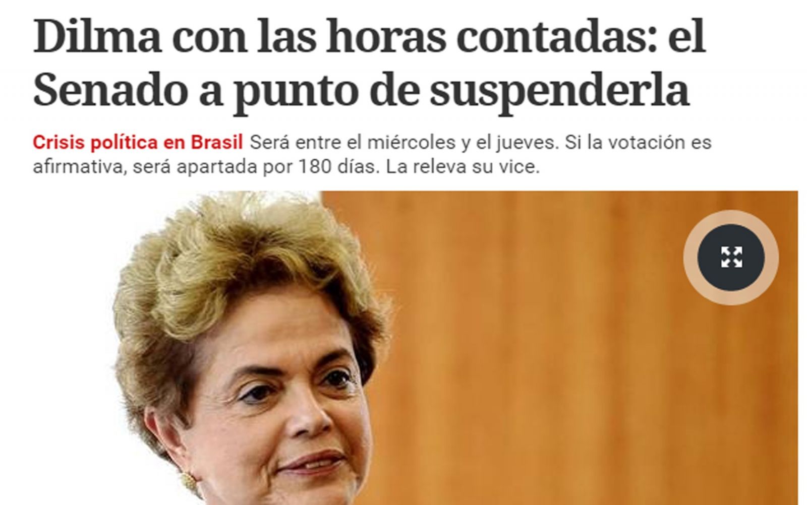Já o site do argentino Clarín afirma que Dilma chegou “Dia D tantas vezes antecipado desde que assumiu a sua segunda gestão” e destaca que ela está com as "horas contadas". O jornal lembra que o Senado brasileiro é composto de legisladores que já foram acusados de ter envolvimento em corrupção.