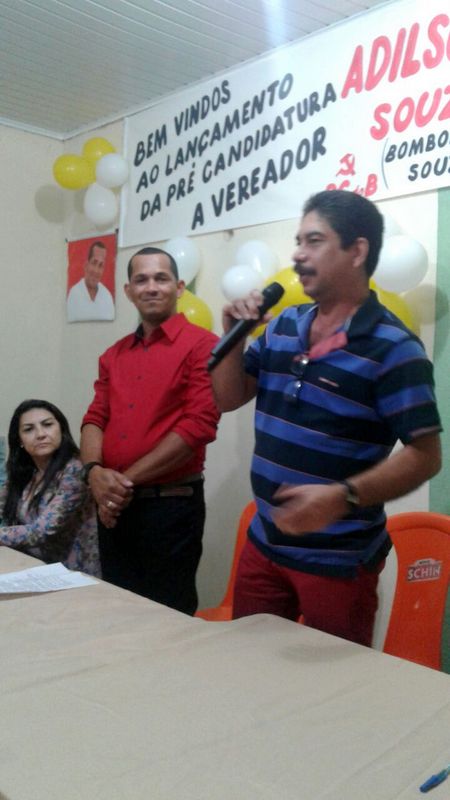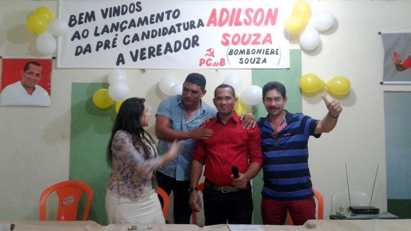 O lançamento da pré-candidatura do pequeno comerciante Adilson Souza, do PC do B, reuniu centenas de pessoas noite passada na Rua Pinheiros, Bairro Moisés Reis, em Eunápolis. Entre outras lideranças estavam presentes Tico Lisboa e Paulo Alves, respectivamente, presidente e vice do STTR-Sindicato dos Trabalhadores e Trabalhadoras Rurais do Município. Também destacamos as presenças da presidente local da sigla, Maria do Socorro Galdino e do ex-vereador Júnior Bahia, que convidou o Adilson a filiar-se ao PC do B.
