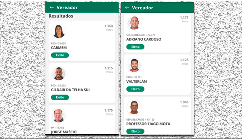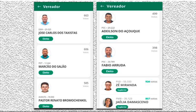 Também concorreram as eleições os candidatos; Bel Checon 3.883 votos, Isac do PT 1.528 e Geovaldo Miranda 379 votos.