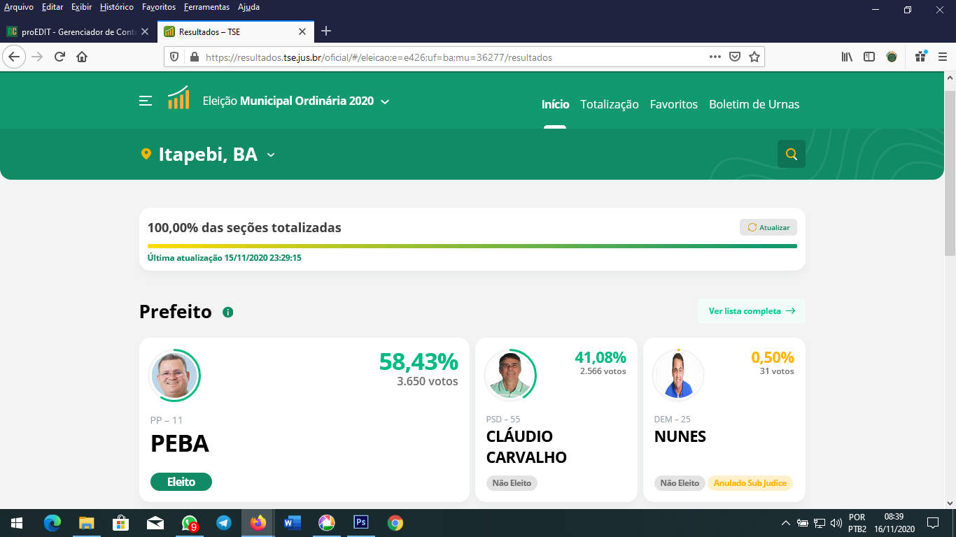Aqui temos os resultados das sete cidades da oitava região da Bahia, eu nápolis já foi publicado