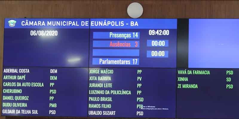 A cerimônia de posse dos 17 vereadores eleitos em Eunápolis, na Costa do Descobrimento, será mantida de maneira presencial. A solenidade está marcada para as 10 h de sexta-feira (1º de janeiro) no plenário principal da Câmara de Vereadores, no Bairro Dinah Borges, conforme determina o artigo 10 do Regimento Interno da Casa.