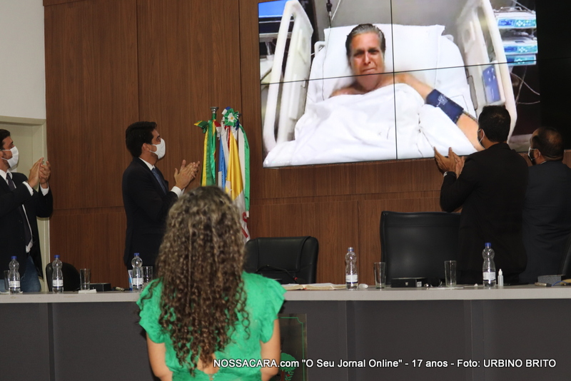 Em seguida, a assessoria da prefeita exibiu no telão uma chamada de vídeo, onde o ex-prefeito, Paulo Dapé, ainda em São Paulo, se recuperando da Covid-19, encaminhou uma mensagem de felicitações aos eunapolitanos.