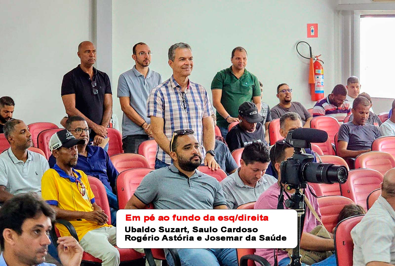 No time dos que foram reeleitos, Jorge Maécio (Avante) e Renato Bromochenkel (Solidariedade) fizeram uma saudação aos novos vereadores presentes no auditório da Casa (Ubaldo Suzart, Negão da Água, Josemar da Saúde, Rogério Astória e Saulo Cardoso) em nome dos demais e garantiram que vão seguir trabalhando.