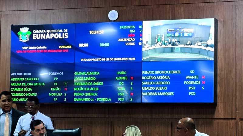 A Câmara de Vereadores de Eunápolis aprovou, por unanimidade, o Projeto de Resolução 01/2025, de autoria de Valdiran Marques (PSD), destinado a criar e denominar a Galeria 08 de Março, destinada a homenagear todas as mulheres que já exerceram ou que exercem o cargo de Vereadora no Município.