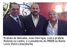 De volta à Bahia, Robério manteve encontro com o prefeito de Salvador, João Henrique, candidato a prefeito pelo PMDB, e com o presidente da legenda no estado, Lúcio Vieira Lima, que colocaram mais uma vez o PMDB á disposição de Eunápolis, informa o prefeito.