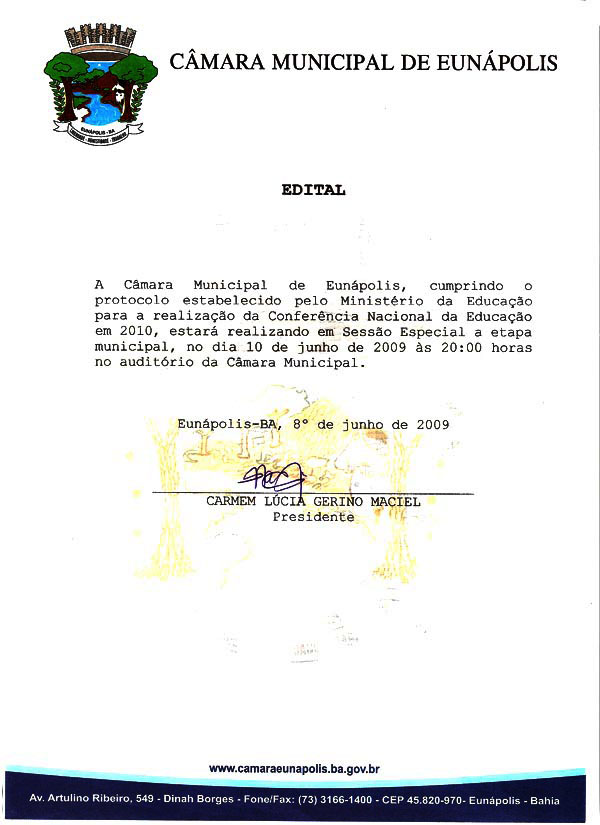 Edital da Câmara Municipal de Eunápolis
