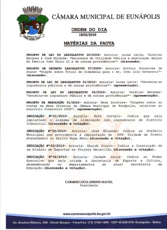 Esta foi praticamente a 1ª sessão ordinária de 2010 da CME onde projetos e indicações foram apresentados para discussão, apresentação, sendo lida a ata da sessão anterior que foi aprovada por unanimidade. Depois de lidas as correspondências, iniciou o pequeno expediente, sendo que o vereador Amós Bispo fez severas críticas ao TCM, como sendo Tribunal do faz de contas, com relação às contas da mesa da câmara para serem votadas, a observação vem em relação ao que foi enviado a Câmara sobre as contas do Ex-presidente Vasco Queiroz.