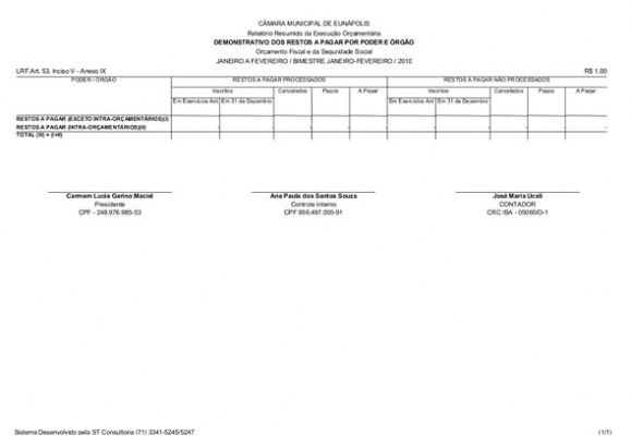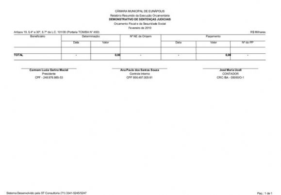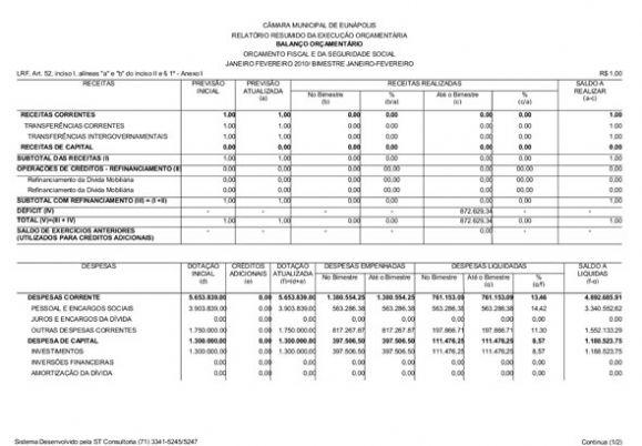Demonstrativo primeiro bimestre da Câmara Municipal de Eunápolis