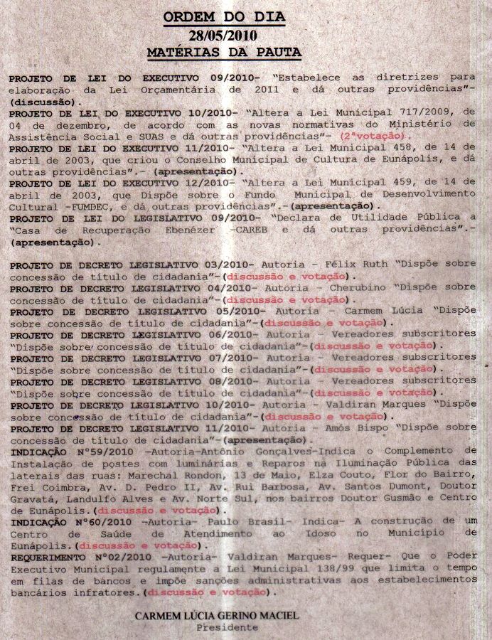 28/05/2010 - Sessão Distrital da Câmara Municipal de Eunápolis em Gabiarra