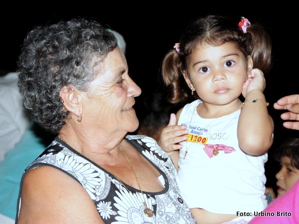 | Mais uma imagem do povão na varanda da residência. | Dona Ana Damasceno com a netinha Maria Clara. | Deldi Ferreira posa para a nossa lente com amigas. |