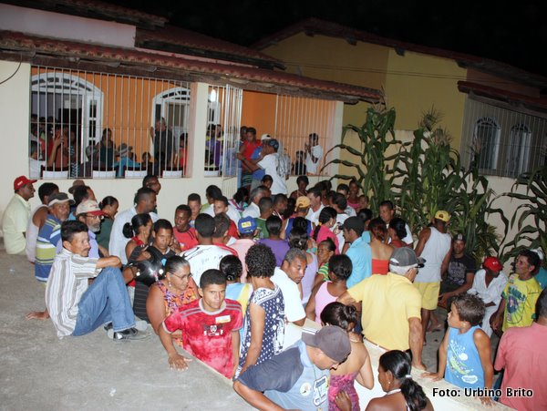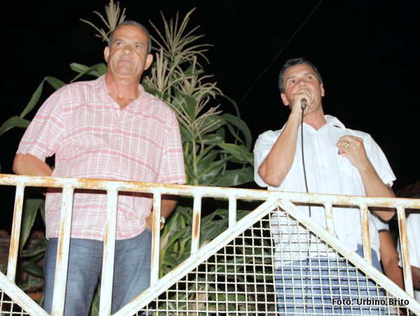 | Dona Ana Damasceno ao centro observa o povo na rua. | Deldi Ferreira fala ao povo agradecendo pelo apoio. | Por outro angulo o povo lota a rua para ouvir Deldi Ferreira. |