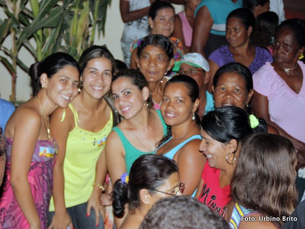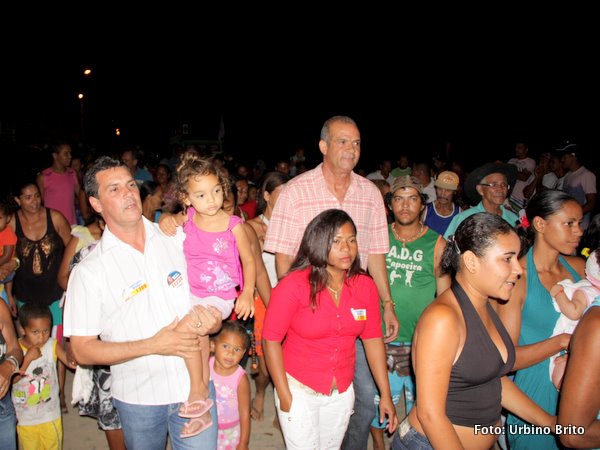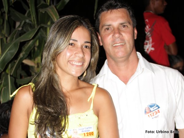 | Léia Ferreira (de amarelo) posa com amigas. | O povão lotou a rua em frente a residência de Deldi Ferreira. | Feliz com a receptividade do povo que o apoia o líder posa ao lado de sua bela esposa. |