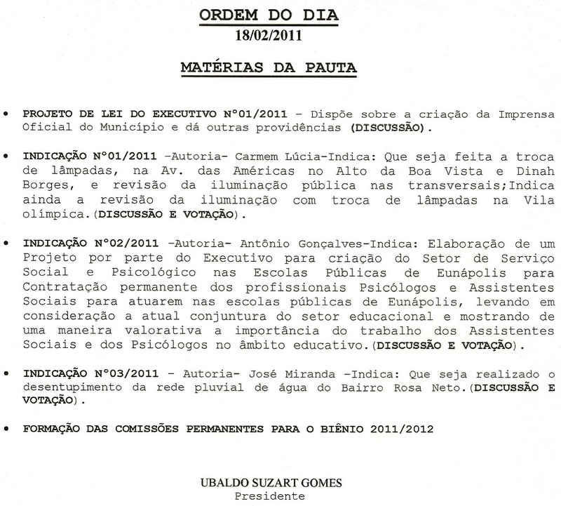 Sessão Ordinária da Câmara Municipal de Eunápolis